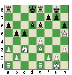 2…, Qc8 3. Qf3 , Qe6 4. Bf4 , Bxf4 5. Qxf4 , Rad8
